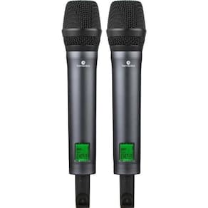 O Microfone Sem Fio UHF multi-frequência com Display Digital e função Auto Scan Harmonics HSF300 Duplo é um sistema sem fio de mão duplo projetado para fornecer qualidade de som excepcional em apresentações ao vivo, karaokê, eventos corporativos e outras situações de desempenho. Este microfone sem fio possui duas unidades de mão com transmissores de frequência UHF independentes, o que significa que cada microfone pode ser individualmente ou simultaneamente para oferecer um desempenho em dueto.