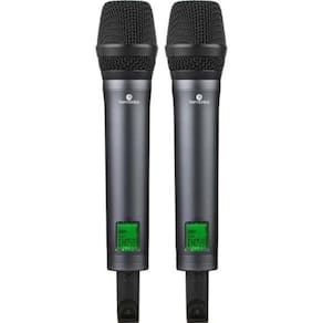 Microfone Sem Fio Harmonics Hsf300-2 Modelo: HSF300-2 O Microfone Sem Fio UHF multi-frequência com Display Digital e função Auto Scan Harmonics Duplo HSF300-2 é um sistema sem fio de mão duplo projetado para fornecer qualidade de som excepcional em apresentações ao , karaokê, eventos corporativos e outras situações de desempenho. Este microfone sem fio possui duas unidades de mão com transmissores de frequência UHF independentes, o que significa que cada microfone pode ser individualmente ou simultaneamente para oferecer um desempenho em dueto.