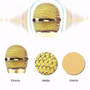 Microfone sem fio Karaoke Reporter Youtuber 1 - Entrada micro-usb para carregamento e utilização do modo auxiliar. 2 - Entrada cartão SD 3 - Entrada USB para pendrives 4 - Saída p2 para caixas de som Karaokê sem fio 1 - Ligue o dispositivo; 2 - Faça o pareamento do dispositivo com o seu smartphone; 3 - Ajuste a voz e o eco de acordo com a sua preferência; 4 - Comece o karaokê.500mah - Faixa de frequência: 100HZ10.000HZ - Modo de carregamento: DC-5V via cabo mini-USB - Função Eco - Peso: 362g Itens Inclusos: -01 Microfone Bluetooth -01 Cabo micro-usb para carregamento -01 Cabo auxiliar-micro-usb-p2 -01 Manual de instruções Observações: Para utilizar o modo auxiliar é necessário utilizar o cabo micro-usb - p2. A entrada p2 do produto é uma saída de áudio.