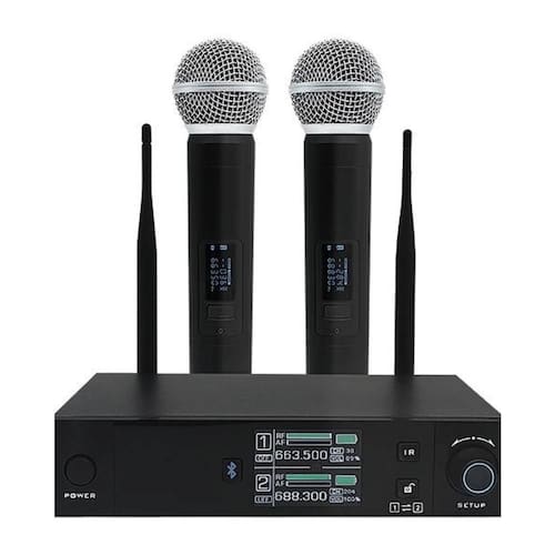 Microfone sem fio leson ls vks2 com bluetooth Especificacao tecnica - faixa de transmissao: uhf550-960mhz - transmissao tecnologica com audio digital - audio digital de 16 bit - consumo eficiente da bateria - apresenta a frequencia e bateria no visor lcd do microfone/ - selecao de multiplas frequencias - projetado para ser utilizado em palcos, apresentacoes, igrejas e etc. - distancia de ate 80m em areas abertas Imagens meramente ilustrativas. descricao especificacoes do microfone: Troca de frequencia: Ir sync Potencia de saida: 10-30mw harmonica: <-50dbc Bateria: 2 pilhas 5v aa duracao da bateria: 5h media especificacoes do : Frequencia: Uhf550-960mhz Largura de banda: 30mhz Faixa dinamica: 96db Distorcao: <0.3% Resposta de frequencia: 30hz-20hkz/+2db Sensibilidade: -95db Power supply: Dc 12-18v 500ma Saida output: 1x6.3mm, 2x xlr saida balanceada. Homologação Anatel: 110052213346 Marca: Não Informado Ean: 7898656411805