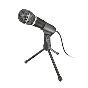 Para utilizar em qualquer lado: microfone de mão com tripé incluído, indicado para utilizar com e sem as mãos, ficha de 3,5 mm com revestimento dourado para uma ligação optimizada e melhor qualidade de voz, Cabo extra longo de 250