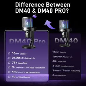 Microfone Wireless Gamer Maono DM40 PRO S Com AI RGB Braço Articulado Preto