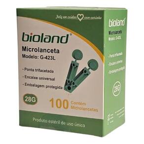 Descrição do produto: A Microlanceta Bioland é composta por uma agulha fundida em plástico que forma o corpo e a tampa removível. A agulha é trifacetada na ponta para facilitar a na pele e obter uma amostra de sangue. A tampa protetora removível mantém a agulha estéril até o momento do uso. Esta lanceta é universal e compatível com todos os lancetadores disponíveis no mercado. - Embalagem contém 100 lancetas - Protetor de ponta exclusivo para evitar acidentes e facilitar o descarte - Produto descartável e não reutilizável esterilizado por raio gama - Indolor - Encaixe universal, compatível com a maioria dos lancetadores - Agulha com alto grau de precisão para máximo conforto - Permanece estéril por 5 anos ou até que a tampa da agulha seja removida - Agulha de longo comprimento Dimensões externas mm : 70mm x 60mm x 50mm Peso: aproximadamente 80g Higiene e conservação: Mantenha longe do calor direto ou da luz solar Registro ANVISA/M.S.: 10410130009 Atenção: Produto descartável, não reutilize. Marca: Não Informado