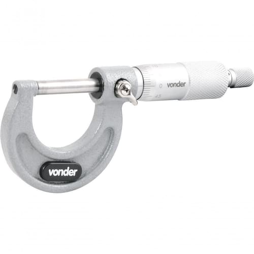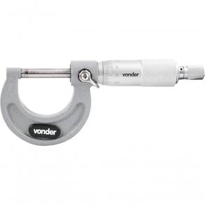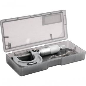 Possui faces de medição em metal duro, arco de ferro fundido esmaltado e catraca para força de medição constante.