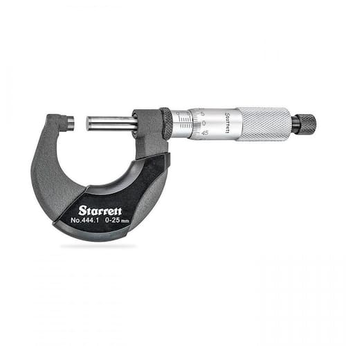 Pontas de contato de metal duro. Barra-padrão de ajuste a partir de 25-50mm. Possui isoladores térmicos montados em cada lado do arco. Acabamento cromo acetinado que evita reflexos e ferrugem. Desenho avançado do cilindro graduado com linhas de comprimento diferenciadas e alternadas com números nítidos para legibilidade precisa e fácil.