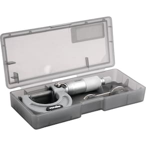 Atenção: caro cliente, antes de perguntar, verifique a descrição do anúncio. Nele estão todos os detalhes técnicos sobre o produto à venda. Caso ainda tenha quaisquer outras dúvidas, informamos que o horário de atendimento da empresa é de segunda a sexta feira das 8h às 12h e das 13:15h às 18h, com até 1h para as respostas. Conteúdo da embalagem: 1 micrômetro Possui faces de medição em metal duro, arco de ferro fundido esmaltado e catraca para força de medição constante. Indicado para medições externas de precisão. Detalhes técnicos Capacidade: 0 - 25 mm Graduação: 0,00039 / 0,01 mm Material das faces de medição do micrômetro: metal duro Norma: din 863 Material do arco do micrômetro: ferro fundido esmaltado Diâmetro do fuso do micrômetro: 6,50 mm Sistema de acionamento do tambor do micrômetro externo analógico: catraca Massa aproximada peso : 0,24 kg - e cdc : legal de 90 dias Marca: Não Informado