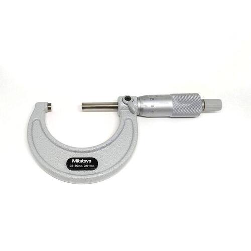 Micrômetro externo mecânico Mitutoyo 25-50mm x 0,01mm 103-138 Com Certificado de CalibraçãoCARACTERÍSTICAS:Design leveESPECIFICAÇÕES TÉCNICAS:Escalas: Bainha e tambor com acabamento cromado, tambor com 18 mmFuso: 6,5mm passo de rosca de 0,5 mm com trava de fusoFaces de medição: Metal-duro, micro-lapidadasArco: EsmaltadoForça de medição: 5-10 N acima de 100mm: 5-15 N Inclui estojo, barra padrão para maiores que 25mm e chave.Exatidão: 0,002mm - Fornecido com Certificado de Calibração Rastreável RBC/Inmetro.