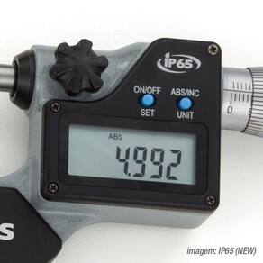 - Pontas de contato em metal duro micro lapidadas, cilíndricas (para a capacidade de 5-30mm) e abauladas para as demais;- Fuso em aço temperado;- Pressão de medição através de catraca na extremidade do tambor;- Trava de fixação do fuso;- Tecla SET (zeragem em qualquer ponto);- Tecla UNIT (conversão milímetro/polegada);- Tecla ON/OFF (liga/desliga);- Tecla ABS/INC (conversão de leitura absoluta/incremental);- Indicador no display (visor) de carga baixa de bateria;- Saída de dados RS232 (cabo de comunicação opcional);- Protetores termoisolantes;- Nível de proteção IP54 conforme norma IEC-60529, contra resíduos de poeira e projeção de água;- (NEW) Nível de proteção IP65 conforme norma IEC-60529, contra entrada de poeira e jatos de água;- Tambor com leitura analógica integrada, com graduação de 0,01mm;- Resolução de 0,001mm/.00005.