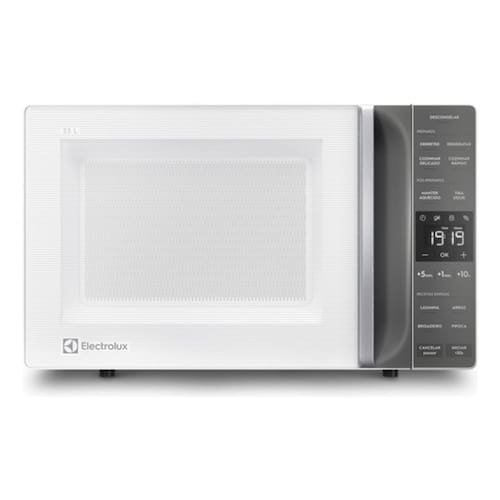 Micro-ondas Electrolux 23L, 1100W, ideal para cozinhas modernas, com descongelamento assistido e puxador embutido.Função Grill