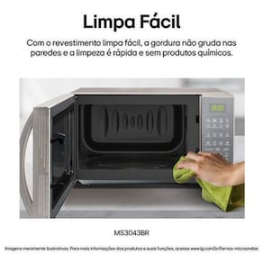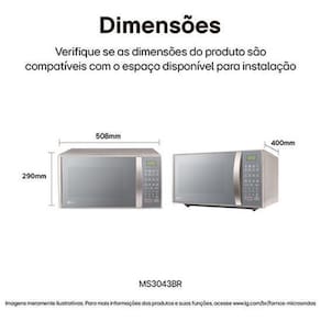 Micro-ondas de bancada com capacidade de 30 litros, potência de 1250W, tensão 127V, construção em metal, plástico e vidro, puxador externo.Função Grill