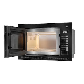 Micro-ondas de embutir Mueller MME25K com 25 litros de capacidade e 900W de potência. Possui 5 níveis de potência, função descongelar por tempo ou peso, painel digital com toque, timer com aviso sonoro e luz interna.Função Grill