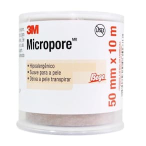 Micropore 5Cm X 10M Bege C/Capa Pct com 6 unid - 3M Contém 1 pacote com 6 unidade Micropore Bege 5Cm X 10M C/Capa 1533 - 3M foi projetada para manter propriedades e funções da pele permitindo que ela respire, não possui látex na sua formulação se tornando ideal para peles mais sensíveis. Sua adesividade permite ser utilizada em curativos, sondas, dreno, cateteres e colostomia como auxiliar para fixação da bolsa. Tudo isso é possível devido sua composição em fibra de não tecido em rayon e viscose permitindo ser aplicada desde neonatos a idosos. Características do Micropore 3M Facilidade de uso e prática de cortar; Boa adesão em regiões úmidas; Livre de látex; Com capa e carretel; Econômica; Confortável, leve e discreta em contato com a pele; Indicada principalmente para peles sensíveis e frágeis devida a sua hipoalergenicidade; Por ser uma fita microporosa, ajuda a manter a função e a integridade da pele reduzindo a ocorrência de maceração e possibilitando a evaporação da pele sem prejudicar o curativo; Aumenta a adesividade progressivamente, o que faz com que fique mais tempo aderida à pele; Mantém resistente adesão mesmo quando molhada; Especificações Técnicas Fabricante: 3M Marca: Micropore tm Tipo: Fita Hipoalergênica Microporosa Medida: 50mm x 10m Composição: Rayon de viscose não tecido com adesivo acrílico hipoalergênico Cor: Bege Tipo de produto: Fita Médica / Fita Cirúrgica Registro na Anvisa: 10002079007