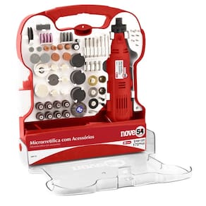 A Microretífica com 172 Acessórios 130 Watts AMR172 Nove54 é uma ferramenta elétrica versátil e compacta que pode ser usada para uma ampla variedade de trabalhos, como cortar, lixar, gravar, polir e muito mais. Com um motor potente de 130 watts, ela é capaz de realizar tarefas com facilidade e precisão. O kit vem com 172 acessórios diferentes, são fáceis de trocar, tornando a transição de uma tarefa para outra rápida e fácil. A Microretífica AMR172 Nove54 tem um design ergonômico que permite um manuseio confortável e seguro, mesmo durante sessões de trabalho prolongadas. Com sua combinação de potência, acessórios variados e design ergonômico, ela é uma excelente escolha para quem precisa de uma ferramenta elétrica prática e eficiente. Portátil, prática e funcional, permite a realização de inúmeras atividades utilizando os acessórios adequados. Possui fácil acesso para troca de escovas de carvão e conta com velocidade variável, que contribui para um melhor acabamento.