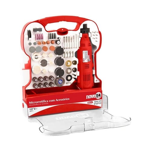 Composto por 171 peças, sendo: - 1 Bastão abrasivo - 1 Chave para micro retífica - 4 Cilindros de feltro - 74 Discos de corte - 10 Discos de lixa - 1 Escova circular de inox com haste - 1 Escova circular de latão com haste - 1 Escova circular de nylon com haste - 2 Escovas pincéis inox com haste - 1 Escova pincel latão com haste - 1 Escova pincel nylon com haste - 2 Hastes para disco de corte - 1 Haste para disco de feltro - 2 Hastes para lixa cilindro - 1 Haste para roda de pano - 7 Limas rotativas - 3 Limas rotativas diamantadas - 30 Lixas cilindro - 1 Pasta para polimento - 4 Pinças para micro retífica - 1 Ponta com feltro - 10 Pontas montadas - 4 Rebolos de carbureto de silício - 4 Rebolos de óxido de alumínio - 1 Roda de borracha - 1 Roda de feltro - 1 Roda de lixa - 1 Roda de pano Ean: 7893946468323