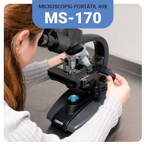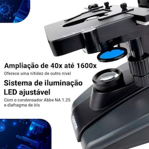 Você já parou para pensar em como pequenos detalhes podem mudar completamente a forma como entendemos o mundo ao nosso redor? O Microscópio Biológico Profissional 40x-1600x foi desenvolvido para proporcionar a máxima precisão em suas observações, revelando até os menores detalhes com clareza impressionante. Com uma faixa de ampliação de 40x até 1600x, você pode examinar células, tecidos ou amostras biológicas com uma nitidez de outro nível. O sistema de iluminação LED ajustável, junto com o condensador e diafragma de íris, garante que a luz seja projetada de maneira ideal sobre a amostra, maximizando o contraste e a qualidade da imagem - mesmo em condições de baixa luminosidade. O cabeçote binocular rotativo de 360 graus proporciona flexibilidade e conforto durante as observações, enquanto o estágio mecânico de dupla camada permite um controle preciso e suave das amostras, facilitando o ajuste exato na visualização. Além disso, com um corpo robusto de metal e componentes ópticos de vidro, este microscópio é construído para durar e manter a estabilidade necessária para uso prolongado em laboratórios, universidades ou até mesmo em casa. Se você é um profissional que busca precisão ou um entusiasta da ciência, o MS-170 é a ferramenta certa para explorar os detalhes invisíveis do mundo microscópico. Ele é fácil de usar para iniciantes? Sim! Apesar de ser um microscópio profissional, o MS-170 foi projetado com controles intuitivos, como o foco coaxial de ajuste fino e grosso, tornando a experiência de uso acessível tanto para iniciantes quanto para especialistas. Como ele se comporta em condições de pouca luz? Graças à iluminação LED ajustável e ao condensador Abbe NA 1.25, você tem controle total sobre a intensidade da luz, garantindo imagens nítidas e detalhadas, mesmo em condições de baixa luminosidade. Área da mesa de trabalho: 115 x 125 mm Dimensões: 21,6 cm x 17,5 cm x 35,8 cm Alimentação: 110-220V