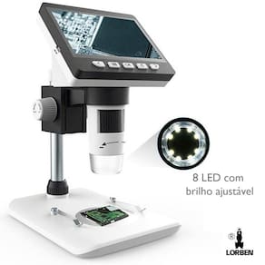 Marca: Lorben Cor predominante: Branco Sensor de imagem: 2M (sensor de imagem de alta qualidade) Ampliação: 0x ~ 1000x Display LCD: 9,5x5,5cm Alcance de foco: 0 ~ 40mm Modo de foco: Manual Resolução: 1920x1080 2M, 1280x960 1M, 640x480 VGA Formato de dados: JPG/AVI Fonte de iluminação: 8 LED com brilho ajustável Taxa de frames: 30 fps Sistema operacional compatíveis: Windows XP, Vista, Win 7/8/10, Mac 10.5 ou superior Interface: USB 2.0 Estrutura da lente: 2G+IR Abertura: F4.5 Ângulo da lente: 16° Idioma: Português, além de inglês, alemão, francês, espanhol, italiano, japonês, chinês e coreano Fonte de energia: Bateria de lítio-íon 3.7V/2600mAh Fonte de alimentação: DC 5V da porta USB Autonomia e Tempo de recarga da bateria: aproximadamente 5h Capacidade do cartão de memoria TF: 8GB a 32GB (não incluso)