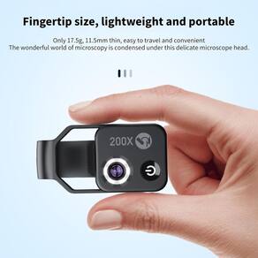 - formato de clipe: o microscópio é utilizado em forma de clipe com um taxa de ampliação de cerca de 200x, que pode caber em todos os telefones celulares do mercado.