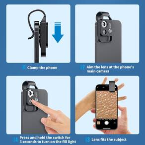 - Ferramenta poderosa: Chega de etapas tediosas, abra a câmera do celular e tire fotos e vídeos com foco rápido, a qualquer hora e em qualquer lugar para obter microfotografia, seu celular é um microscópio.