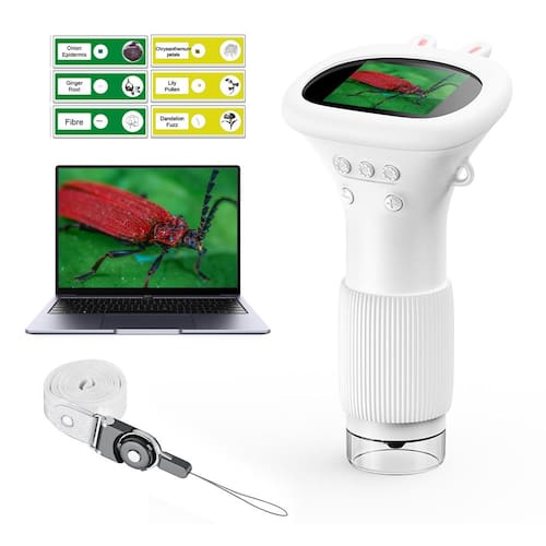 Microscópios WINWEND para crianças de 5 a 12 anos 1. Explore com ampliação de 100 x 1000 x : descubra com a faixa de ampliação de 100 x 1000 x do nosso microscópio portátil infantil, perfeita para crianças explorando detalhes intrincados de amostras. 2. Aproveite o momento: melhore o aprendizado com os modos de foto e vídeo com um clique com resolução de 1080p. Este microscópio digital vem com espaço de armazenamento bulit, capaz de armazenar 400 fotos. Insira um cartão de armazenamento pessoal para gravar vídeos. 3. Luzes LED ajustáveis: o microscópio infantil tem 8 luzes LED embutidas que são ajustáveis e o brilho pode ser facilmente controlado com uma simples rotação de botão, tornando-o ideal para capturar imagens ou gravar vídeos em ambientes com pouca luz. 4. Conectividade do computador: Expanda seu campo de visão conectando-se a um PC através do cabo USB. Para ver o mundo sob o microscópio mais claramente. Acenda a curiosidade com nosso microscópio infantil especialmente projetado! Conteúdo da embalagem: 1 microscópio (alça de mão incluída). 1 cabo USB. 1 manual do utilizador (sem garantia 6 slides de amostra. - ?Espaço de armazenamento embutido?O microscópio WINWEND little scientist é perfeito para observar plantas, insetos, moedas, joias, selos, etc. Também é um ótimo presente para crianças estimularem seu interesse no mundo microscópico. Este microscópio digital vem com espaço de armazenamento bulit, capaz de armazenar 400 fotos. Insira um cartão de armazenamento pessoal para gravar vídeos. - Faixa de ampliação de 100 x 1000 x ? Este microscópio se destaca dos microscópios de outras crianças com sua notável faixa de zoom de 100 x 1000 x, permitindo que as crianças mergulhem em uma variedade diversificada de espécimes. O foco fino e grosso de precisão coloca os espécimes em foco de forma rápida e nítida. - ?Luzes LED ajustáveis?Este microscópio infantil está equipado com oito luzes LED projetadas para iluminar o objeto, oferecendo uma ampla variedade de seis níveis de brilho. Este recurso garante a produção de imagens e vídeos claros e brilhantes, mantendo a visibilidade ideal mesmo em condições de pouca luz. - Conectividade do computador: conecte a um PC via cabo USB para um campo de visão mais amplo. Observe os espécimes com mais clareza e facilite a exploração compartilhada. Quando as crianças veem o mundo microscópico sob o microscópio, elas vão adorar este kit de microscópio e aumentar seu interesse pela natureza. - ?Microscópio portátil de bolso?O microscópio WinWend pesa menos de 300 gramas, tamanho moderado para crianças de 5 a 12 anos e adultos usarem. O pequeno microscópio de cientista também vem junto com uma pulseira para facilitar o transporte e evitar quedas inesperadas.
