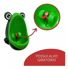 Mais facilidade no processo de desfralde dos meninos com o Mictório Infantil Sapinho, tornando mais divertido e desenvolvendo a independência e economia de dinheiro. Possui um alvo giratório que além de divertir evita sujeiras e estimula o uso. Fácil Instalação através de ventosas que vão juntas, o que facilita a instalação e permite ajuste de altura; Possui recipiente removível com alta capacidade, que facilita a limpeza sem a necessidade de desinstalar;