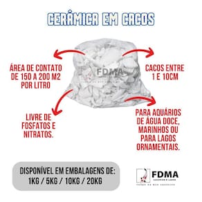 Invista na Cerâmica Caco e proporcione um ambiente saudável e limpo para os seus peixes e plantas aquáticas. Garanta a qualidade da água do seu aquário ou lago com essa mídia biológica de alto desempenho. Marca: Fdma Aquários E Lagos