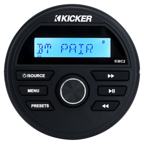 Conecte seu Bluetooth ao KMC2, conecte às entradas USB ou RCA incluídas ou ligue o rádio AM/FM. Adicione um controle remoto KRC12 com fio para ainda mais controle. Este centro de mídia durável está pronto para se divertir na água!