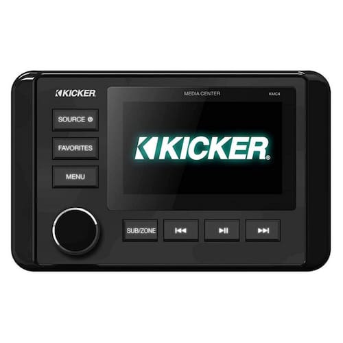 Feito para jogar: Equipado com um sintonizador AM/FM com banda meteorológica, áudio Bluetooth, RCA e entradas USB de carregamento, o KMC4 está pronto para qualquer música que você queira tocar. A tela colorida mostra o artista na tela, a arte do álbum, a faixa e os dados do título. Adicione um controle remoto KRC12 com fio para ainda mais controle. Este durável KMC4 Media Center está pronto para se divertir na água! (IP66)
