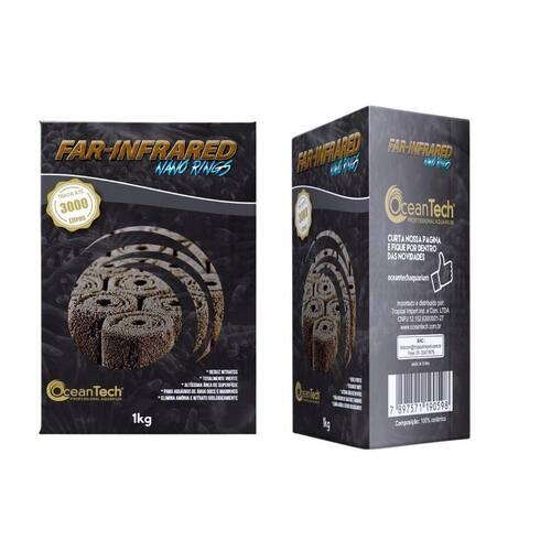 Cerâmica Nano Rings Far-infrared 1K - Ocean Tech 1000g Far-infrared Nano Rings OceanTech® é produzido a partir de microesferas cerâmicas tridimensionais tendo assim uma área de superfície para a colonização de bactérias de até 10 vezes maior do que outras mídias filtrantes. Além da altíssima capacidade porosa de colonização bacteriana High Energy Nano Rings OceanTech® liberam lentamente e continuamente cerca de 20 elementos e minerais exigidos pelos animais aquáticos, como cálcio, magnésio, enxofre, titânio, estrôncio, etc. Ajudando o equilíbrio osmótico. O uso a longo prazo pode melhorar a função imunológica dos peixes e melhorar a capacidade anti-infecção. Trata até 3000 litros Ean: 7897571190598
