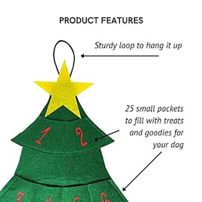 25" de altura x 19" de largura (na parte mais larga). Inclui loop para travar. Envolva o seu cão nas suas celebrações de Natal! Contagem regressiva para o Natal com este calendário de advento! Coloque um deleite em cada bolso para dar ao seu animal de estimação todos os dias. Os bolsos em cada fileira são de tamanhos diferentes. Devido a cada cão ter diferentes necessidades dietéticas, as guloseimas NÃO estão incluídas. Reutilizável para que seu cão possa desfrutar ano após ano. Feito de tecido de feltro de qualidade.