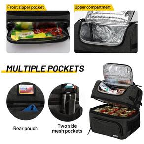 Bolsa para lancheira com 2 compartimentos Esta lancheira oferece diferentes maneiras de embalar sua comida. A seção superior seca possui uma abertura em U e puxadores de zíper duplo para fácil acesso, ideal para itens que não vazam, como frutas, salgadinhos ou tortas. A seção fria de fechamento com zíper duplo inferior envolvente e sem vazamentos é isolada com forro de papel alumínio macio, perfeita para bebidas, água, suco e afins Saco térmico isolado Espuma espessa de isolamento térmico e forro de folha de alumínio de grau alimentício trabalham juntos para manter o conteúdo frio , quente , fresco por horas Fácil de limpar. Refrigerador de alta confiabilidade Um bolso frontal com zíper para embalar utensílios e guardanapos, dois bolsos laterais de malha com alças extras ajustáveis para garrafas de bebidas e latas de refrigerante, uma bolsa traseira com fecho de fecho aderente e um porta cartões transparente, dando a você acesso fácil a tudo que você precisa para um almoço perfeito Marca: Não Informado