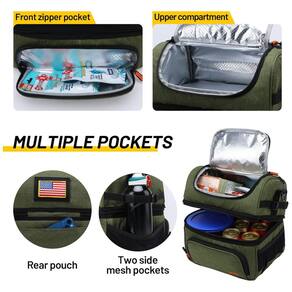 Grande lancheira isolada para o trabalho Design com 2 compartimentos isolados separados para transportar lanches, bebidas e lanches. Dois bolsos laterais de rede com alça ajustável para segurar suas garrafas de água Resfriador de lancheiras masculinas de tamanho grande Seção seca superior espaçosa com abertura em U e zíperes duplos para fácil acesso, seção fria inferior espaçosa sem vazamento com forro de alumínio macio, perfeita para recipientes de alimentos e bebidas que precisa se manter frio. Liberte as suas mãos e seja confortável para transportar Este cooler lancheira vem com uma alça de ombro acolchoada destacável e uma alça macia, a alça de ombro longa pode ser ajustada de 71 a . Bolsa térmica alta confiável com vários bolsos Um bolso frontal com zíper para embalar utensílios e guardanapos, uma bolsa traseira com fecho de fecho aderente e um bolso transparente para cartão de visita ou notas de almoço Refrigerador de almoço com compartimento duplo isolado Espuma espessa de isolamento térmico e forro de folha de alumínio de grau alimentício trabalham juntos para manter o conteúdo frio , quente , fresco por horas, recomendamos o uso de bolsa de gelo para prolongar o tempo de resfriamento Saco de lancheira versátil Grande capacidade, mas não muito volumoso. Perfeito para levar para o trabalho, viagem, viagem, piquenique ao ar livre, praia, etc Marca: Não Informado