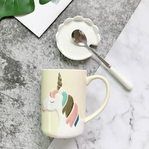 Preço razoável, durável e prático. Item mais vendido, feito de cerâmica, mais durável de usar. Portátil e leve. Belo design com padrão de unicórnio, atraente o suficiente. Adequado para copos. Veja menos