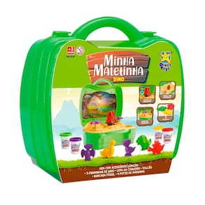 A MALETINHA DINO incrível! Já pensou ter a sua própria bancada fóssil para descobrir antigos dinossauros? Ou até mesmo ter seu próprio vulcão com lava de massinha de verdade? A maletinha DINO tem tudo isso para levar para onde quiser! Ela tem um vulcão que sai lava de massinha, várias forminhas de Dino, uma bancada e muita massinha para a criançada soltar a imaginação!