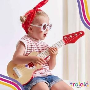 Possui 4 cordas que ajudarão crianças com 3 anos a descobrir os diferentes sons e despertar seu senso de ritmo.