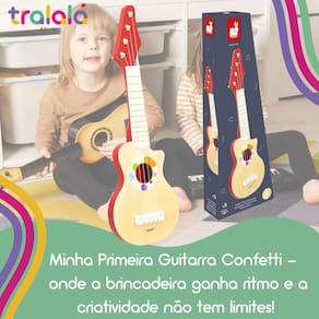 Minha Primeira Guitarra Janod Instrumento Musical Infantil Esta linda guitarra com um estilo poderoso certamente eletrizará todos os fãs de música Concertos e tributos estão garantidos com este brinquedo musical de madeira da linha Confetti.