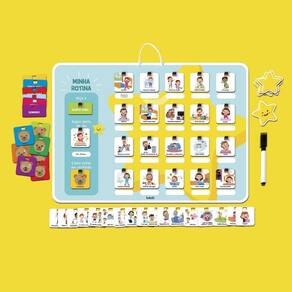 O dia a dia das crianças fica mais fácil quando elas têm clareza da sua rotina. O que devem fazer, o que vem antes e o que vem depois. Com o quadro de rotinas é possível propor atividades, meta do dia, horários, conversar sobre como se sente e ainda conquistar estrelinhas como incentivo. Com o quadro de rotina para filhos se cria ótimas oportunidades para o diálogo entre família em diversos níveis, como sentimentos, valores, responsabilidades, até qualidade de vida e futuro. Cada família é única e achará o seu próprio jeitinho de melhor utilizar esta tabela de rotina diária infantil. Feito de madeira reflorestada, contém 1 quadro medindo 38 27 cm e 7 dias da semana, 9 sentimentos, 38 atividades/metas, 1 canetinha de escrever e apagar e 1 saco de pano. 38 rotinas / metas: Acordar Escovar os dentes Trocar as roupas Ir à escola Café da manhã Jantar Lanche Almoço Usar o banheiro sozinho Dever de casa Hora do descanso Permitido assistir TV Permitido os eletrônicos Se alimentar bem Dormir no seu quarto Brincar com jogos Atividades manuais Brincar ao ar livre Poupar Hora de dormir Escovar os dentes Tomar banho Leitura Orar / rezar Beber mais água Organizar a bagunça Arrumar sua cama Ajudar nas tarefas do lar Cuidar do pet Ir à fono. / T.O. / Psico. Ser gentil e amigável Aula de... Aula de... Não gritar / palavrões Aula de inglês / francês / espanhol Aula de reforço escolar Ir ao dentista Ir à consulta médica