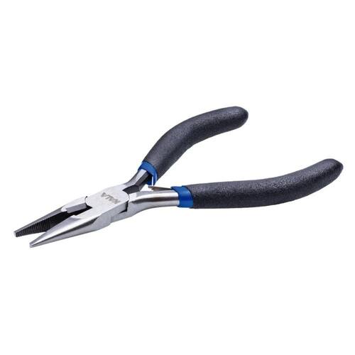 O Alicate bico meia-cana curvo da série Mini é projetado para vasto leque de trabalhos de montagem e reparação, que exigem grande precisão. Revestimento de níquel impede a corrosão. A dureza das bordas da lâmina e 53 HRC. A dureza das partes de pressão e 45,5 HRC.