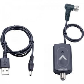 *Imagens meramente ilustrativas. Especificações Técnicas Código do produto: -26 Frequência: 54 a 806MHz Impedância: 75 ? Conector entrada: F Fêmea Conector saída: ?F? Macho angular Conector alimentação: P4 Fêmea Tensão de alimentação: 5VDC (qualquer porta USB) Consumo de energia:< Ganho: 20-26dB Comprimento do cabo RF: 30cm Comprimento do cabo alimentação: 1m Peso do produto: 30g VSWR:<2:1 Dimensões do produto: 32x55x15mm Ean: 7898127606198