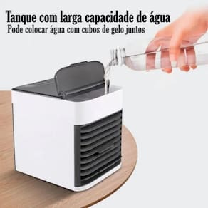 Tipo de Climatização: Frio Peso: 1 kg Dimensões: 17 cm A x 16 cm C x 14 cm L Umidificador: Sim Purificador de Ar: Sim Função de Ventilação: Sim Capacidade de Água: 0,5 L Potência: 30W 3 Velocidades de ventilação Tensão: Bivolt 110V/220V Marca: Não Informado Ean: 7895342701301
