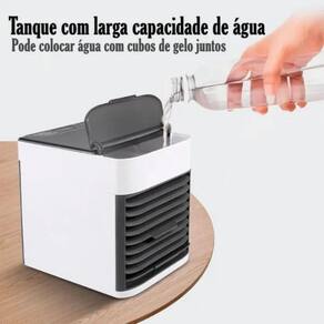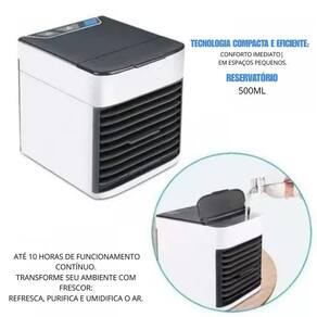 Tipo de Climatização: Frio Peso: 1 kg Dimensões: 17 cm A x 16 cm C x 14 cm L Umidificador: Sim Purificador de Ar: Sim Função de Ventilação: Sim Capacidade de Água: 0,5 L Potência: 30W 3 Velocidades de ventilação Tensão: Bivolt 110V/220V Marca: Não Informado