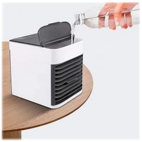 Não é um ar-condicionado, não espere resfriar uma sala ou quarto inteiro.Projetado apenas para espaço de trabalho, estudo, gamer delimitado a um perímetro de até 2 metros. Cria uma zona de resfriamento pessoalesse é o produto ideal para quem precisa de uma solução portátil e fácil de usar. Pode ser ligado em qualquer dispositivo que tenha entrada usb.Está sofrendo com esse calor Não tem ar condicionado do escritórioPode ser levado para qualquer lugar e ser carregado na bolsa e mochila.- não acompanha carregador de tomada ou fonte, somente o cabo usb.- só funciona estando conectado a corrente elétrica. Notebook, computador e tomada- para gelar mais, indicado colocar água gelada ou até mesmo gelo.- não indicado para utilizar em veiculo, pois pode vazar águaespecificações:- potência: 10 w- ventos velocidade: 3 modos alto/médio/baixo - peso e dimensões- dimensões: 16 x 17 x 14,5 cm- voltagem : bivoltobservação: não utilizar fonte turbo, a fonte recomendada e 5v 1-a caso não tenha temos nos nossos anúncios, caso utilize fonte turbo o climatizador queima e a garantia não cobrirá -1 climatizador de ar condicionado portátil- 1 cabo usb- 1 manual do usuário