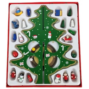 Cada Mini Bonequinho é um pedacinho de magia Natalina, com 24 enfeites exclusivos: bonecos de neve, trenós e presentes, todos esculpidos em madeira, esse é o tipo de enfeite ideal para sua árvore.