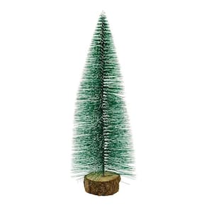 Mini árvore natalina de 25 cm de altura com base que é um tronco. Material: plástico e madeira