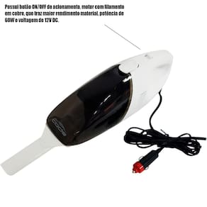 Mini Aspirador Pó Automotivo Portátil Carro Tomada 12V 60W Liga Acendedor Code 5452 Vacuum Cleaner - branco
