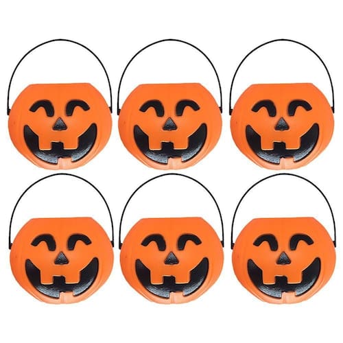 Contém: 06 Mini Baldes de Abóbora Pequenos para Decoração de Halloween