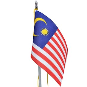 Mini bandeira mesa malásia com 8cm x 5,5cm 15cm mastro Por gentileza se atentem as medidas do produto Medida de 15 cm se refere ao tamanho do mastro da bandeira Medida da bandeira 8 x 5,5 cm Estampa em apenas uma face da bandeira