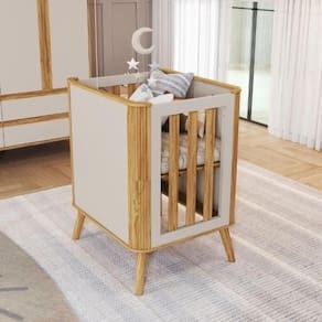 O Mini Berço Theo Peroba acompanha colchão, Cor Off White com Amêndoa, referência 6555.114, o kit evolutivo do berço Theo é um volume que pode ser vendido separadamente para transformar o berço em Mini Berço. O kit e composto pelas grades menores, barrotes, molduras laterais inferiores e colchão. Ideal para mães que buscam segurança do seu bebê para um sono de qualidade e revigorante independente do momento do dia/noite protegendo seu bebê. Com um design elegante na cor Off White com amêndoa e fabricado em MDF, este mini berço proporciona não apenas beleza, mas também segurança e conforto para os pequenos. O Mini berço tem grandes fixas e ventiláveis de ambos os lados para garantir que nos pesadelos, seu bebê jamais caia do berço.