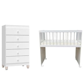 Mini Berço Moisés Alegria com Colchão e Cômoda Gaveteiro Ternura Baby Branco Brilho - Incorplac