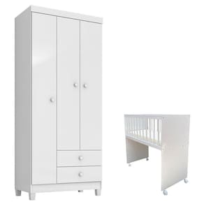 Mini Berço Moisés Alegria com Colchão e Guarda Roupa 3 ´Portas Ternura Baby Branco Flex - Incorplac