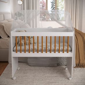 -MDF 15mm -Capacidade até 13 kg -Rodízios (2 com trava) -Laterais ajustáveis -Inclui colchão D18 (91 × 38 × 7 cm) -Compacto e funcional -Informações Adicionais: -A estampa do colchão pode variar conforme o lote -A limpeza pode ser feita com pano macio -Evitar exposição prolongada ao sol e umidade
